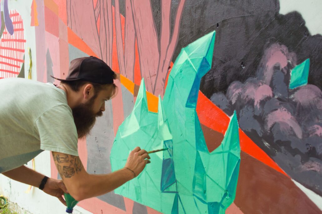 • Flächenkunst: Wandgestaltungen mit figurativen oder abstrakten Motiven – häufig im städtischen Raum sichtbar.